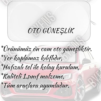 Araba ön cam güneşlik Ultralüx kaliteli Araba Ön Cam Güneşliği güneş ışınlarını geri yansıtan tasarımıyla aracınızı daha serin tutmanıza yardımcı olacak. Yaz günlerinde aracınızı güneş alan bir alana park etmek zorunda kaldığınızda aracınızı aşırı derecede ısınmış bir şekilde bulabilirsiniz.
