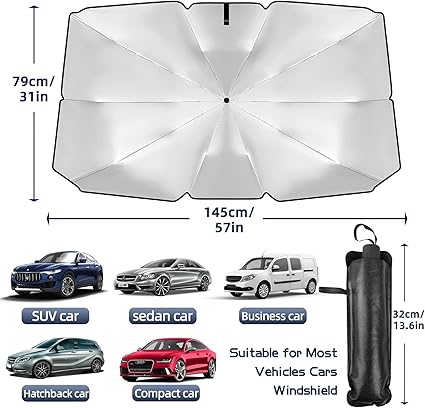 Ön Cam Güneşlik Şemsiye – Tüm Arabalarla Uyumlu Boyut, UV Güneş Işığı Tam Yansıtma Kapasitesi, Pratik Kullanım, Kılıflı Şık Tasarım, Araç İçi Katlanabilir Yüksek Yalıtımlı Güneşlik Şemsiye