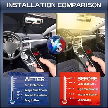 【Yüksek Yalıtımlı Güneşlik Şemsiye】Çok katmanlı yalıtım malzemesi sayesinde aracın içindeki sıcaklığı dış ortamdan izole ederek daha serin kalmasını sağlar. Özellikle uzun süre güneş altında kalan araçlarda iç mekânın ferah kalmasına yardımcı olur. Bu özellik, hem konfor hem de aracın iç parçalarının ömrü açısından büyük katkı sağlar. Sıcak havalarda sürüşe geçmeden önce ideal ortam yaratır. Enerji tasarrufu ve dayanıklılık sağlar.