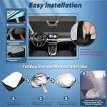 Kolay çıkarılabilir: Araç güneşliğinin ön camı günlük kullanım için çok uygundur, katlanabilir, kolayca toplanabilir. Katlandıktan sonra depolama hacmi küçüktür, yerden tasarruf etmek kolaydır