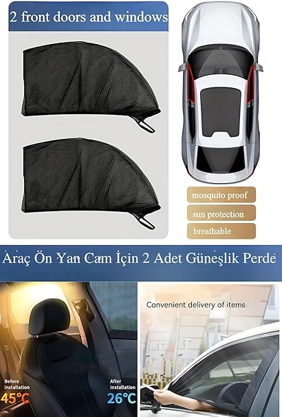 Ön Yan Cam Güneşlik–UV Koruma Isı ve Güneş Engelleyici Sineklik Bebek Emzirme Perdesi (2 Adet)