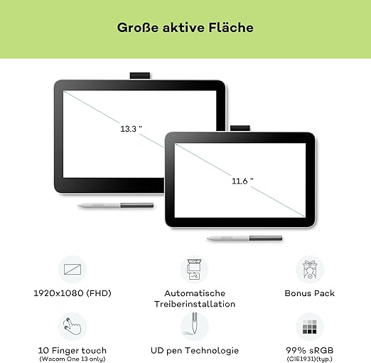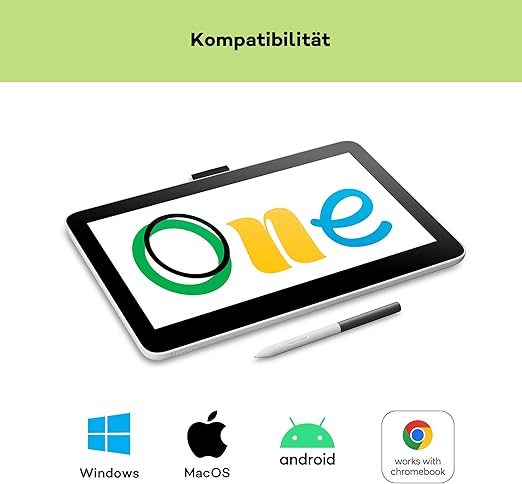 Wacom One 13 Touch grafik tablet, geniş 13,3″ çoklu dokunmatik ekran Full HD (%99 RGB (CIE1931) (tip.)) Doğal kalem girişi, dijital çizim yapan sanatçılar için mükemmel.