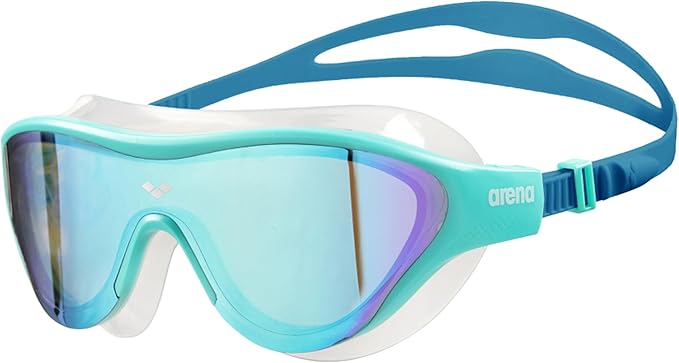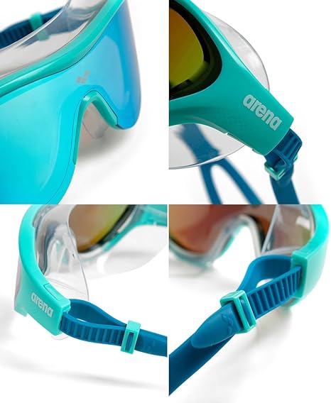 Aynalı lensleri ve çoğu yüze uyum sağlayan yumuşak contaları ile yüzme maskesi