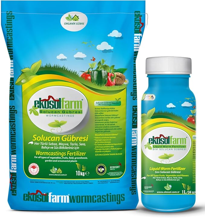 Organik%100 Solucan Gübresi Toz 10 KG + 1 Litre Sıvı Organik Gübre