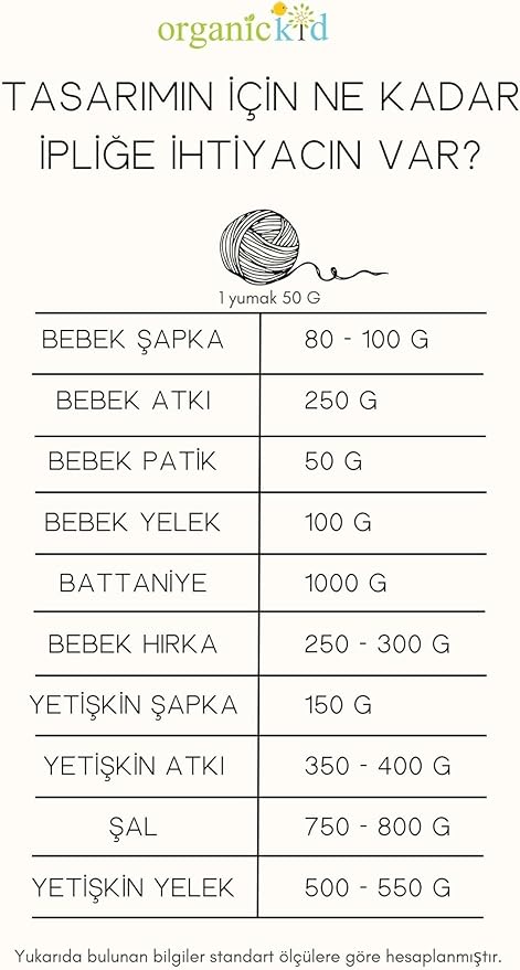 Kullanım Alanları: Bebek yelek, hırka, battaniye, şapka, patik ve amigurumi oyuncakları örmek için kullanılabilir
