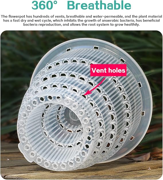 Malzeme: Yüksek kaliteli PP plastik, dış tencere yüzeyi mat beyazdır. Paket 4 adet bahçe saksısı içerir, aralarından seçim yapabileceğiniz farklı boyutlarda, havalandırmayı satın almadan önce lütfen kontrol edin: delikli nefes alabilen şeffaf saksılar, kökleri güneş ışığı ve hava gerektiren bitkiler için mükemmeldir. Plastik kaptaki delikler bir bitkiye gerekli miktarda hava sağlar. Farklı Orkide türleri için harika.