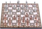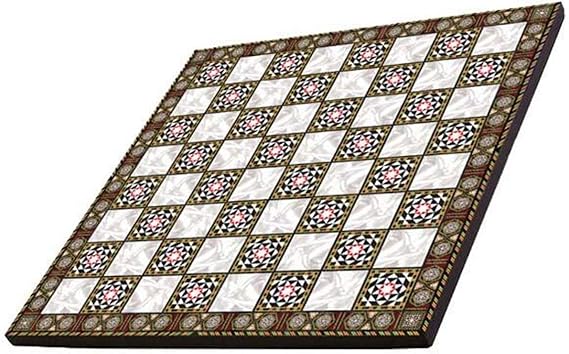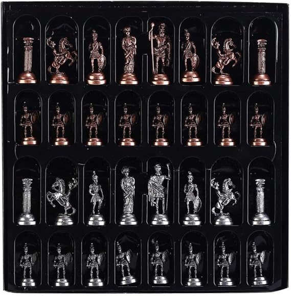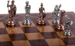 Orta Boy Metal Roma Satranç Takımı Antik ve Sedef Desenli MDF Ahşap Satranç Tahtası (37×37 cm.)