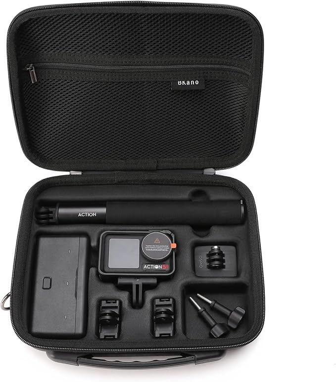 OSMO ACTION 5 PRO İÇİN TASARLANMIŞTIR: DJI Osmo Action 5 Pro ve diğer bazı temel aksesuarlar için orta boy depolama.