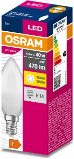 Osram Value B40 4.9W 827 2700K Sarı Renk E14 Mum LED Ampul