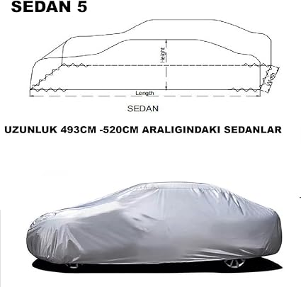 Oto Branda, Araç Brandasi, Araba brandası, Otomobil Brandasi; Araç uzunlugu 493cm-520cm araliginda olan Sedanlar için. Branda boyutu5300mm x 1450mm x 1280mm ; Gri (SEDAN 5)