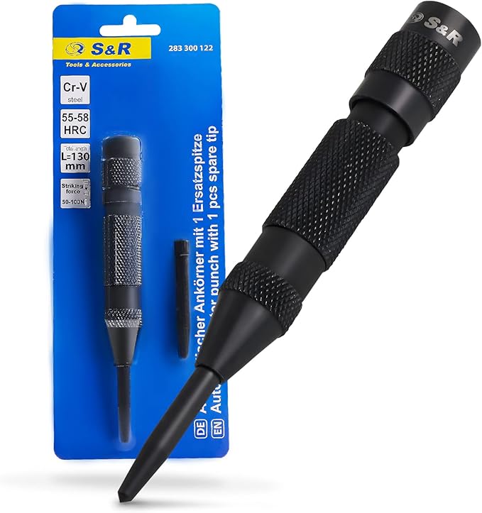 S&R Bahar Mısır, 50-100 Newton’dan Sürekli Darbe Ayarlı Otomatik Merkez Punch, Tek Elle Metal, Ahşap, Taş, Beton, Plastik, Ticari ve Özel Ortamlarda Plastik