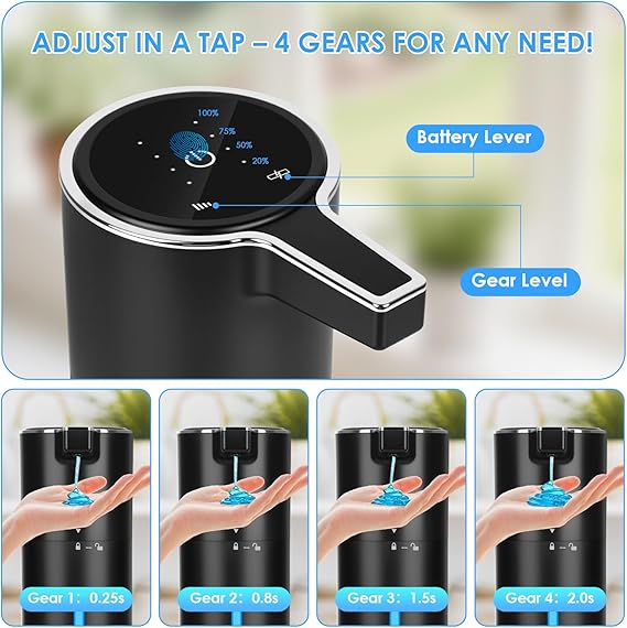 Kişisel dozaj: 4 ayarlanabilir miktar kademesi (0,25s/0,8s/1,5s/2,0s) sensörlü sabunluk ihtiyaçlarınıza uyum sağlar. Sıvıdan tasarruf edin ve israfı azaltın, sabun, dezenfektan veya şampuan için. Otomatik sabun dispenseri her ev için maksimum esneklik sunar.
