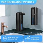 Esnek montaj seçenekleri: Duvara monte edilen elektrikli sabunluğu duvara monte ederek yerden tasarruf etmek için (delmeden!) Doğrudan masaya yerleştirilebilir veya birlikte verilen taşıyıcı yapıştırıcı ile duvara asılabilir. IPX5 su geçirmezlik özelliği sayesinde banyo veya mutfak gibi nemli ortamlar için mükemmeldir.