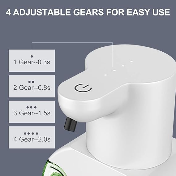 【4 Kademeli Ayarlanabilir】 Üstteki düğmeye dokunun ve seçim için 4 farklı sabun hacmi vardır, çeşitli yaşam temizliği ihtiyaçlarına uygundur. Seviye 1 günlük el yıkama içindir, seviye 4 dekontaminasyon içindir. Sabun akışını ayarlayabilmeniz için yanan ışık sayısına göre çıkan sıvı miktarını her zaman bilebilirsiniz.