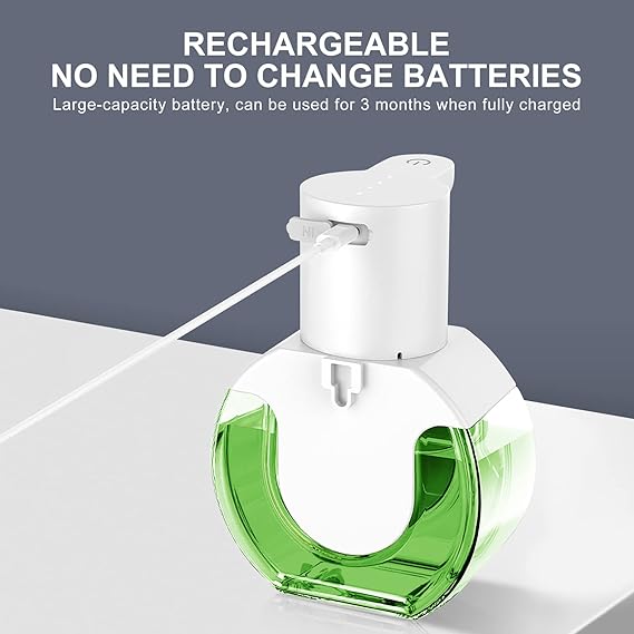【USB-C Şarj Edilebilir】Duvara monte sabunluk USB kablosuyla şarj olur, çok çevre dostu, pil gerektirmez, sadece çok düşük güç tüketir. Bu şarj edilebilir elektrikli sabunluk, üç ay boyunca şarj edilebilir veya yaklaşık 2000 kez kullanılabilir. Ve pili sık sık değiştirmeniz/şarj etmeniz gerektiğinden asla endişelenmeyeceksiniz.