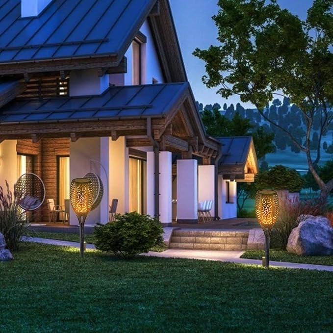Geniş uygulama yelpazesi: Güneş enerjili meşaleler ev, bahçe, avlu, patikalar, kaldırım, peyzaj dekorasyonları ve bahçe partileri, kamp, barbeküler, düğünler, Noel, Cadılar Bayramı partileri için mükemmeldir ve mükemmel bir kamp ateşi atmosferi oluşturur.