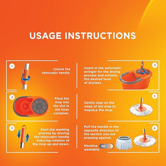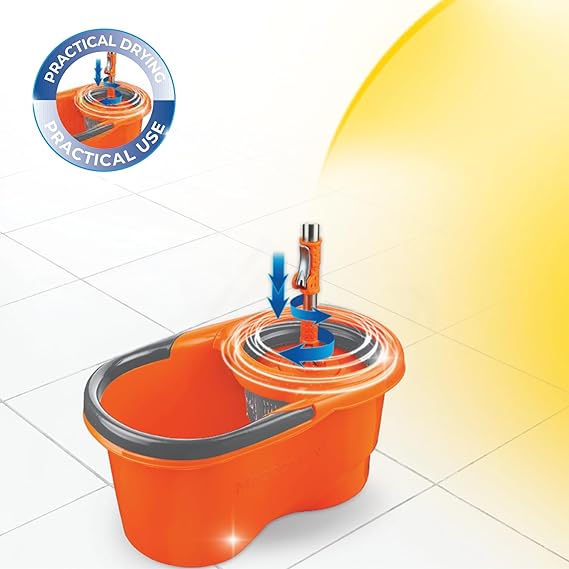 Pedalsız sıkma mekanizması ile paspası el değmeden sıkıp durulayarak temizlik sonrası su sıçramasını önler.