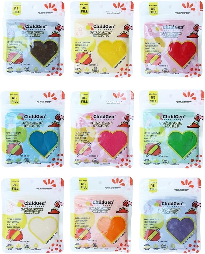 Doğal Oyun Hamuru – 9’lu 9×125 Gram Vakumlu Kartuş Paket – (ecopack-refill)