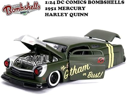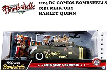 Oyuncak DC Comics Bombshells Harley Quinn & 1951 Merkür Die-cast araba, 1: 24 Ölçek Araç & 2.75 “Koleksiyon heykelcik% 100 Metal”