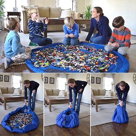 Oyuncak Hurcu Çantası Oyun Halısı Hurç Sepet Erkek Kız Çocuk (Mavi)