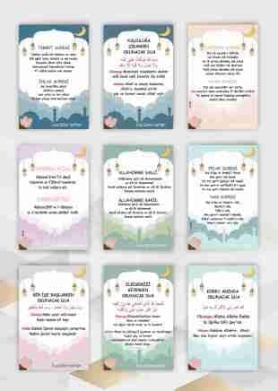Özel Kısa Sure ve Dua Ezber Kartları 7×10 cm Karton 18 Adet Eğitici Kartlar