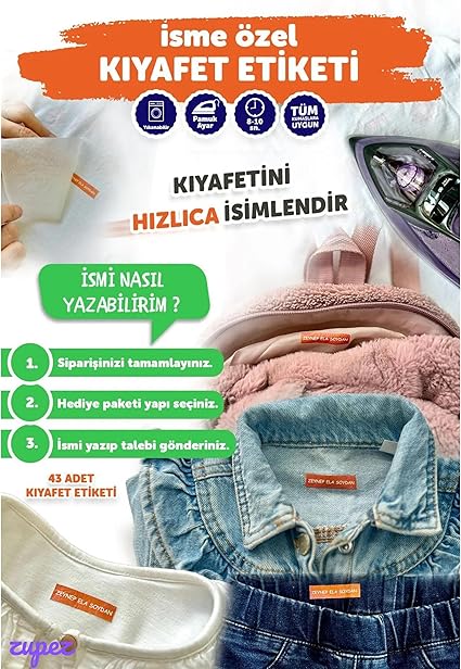 KİŞİSELLEŞTİRME: Her kıyafet için özel isim baskılı etiketler, çocuğunuzun eşyalarını kolayca tanımasını sağlar