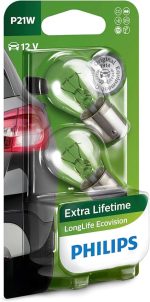P21W LongLife EcoVision Geri Vites Park Ampül Tek Duy, 12V, 2’li Paket Otomotiv Ampulü