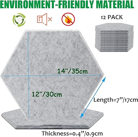 Paket Altıgen Akustik Paneller Stüdyo ve Ev için Kendinden Yapışkanlı Ses Geçirmez Duvar Dolgusu, 30 x 30 x 1,4 cm, Pembe Ses İşlemi, Gürültü Azaltma için İdeal