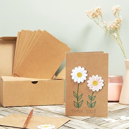 Mükemmel Boyut: Düz el işi kartlarının her biri yaklaşık 10 x 15 cm boyutundadır; kahverengi düz kartlar yüksek kaliteli kalın kağıttan yapılmıştır ve zarflar ofset kağıttan yapılmıştır