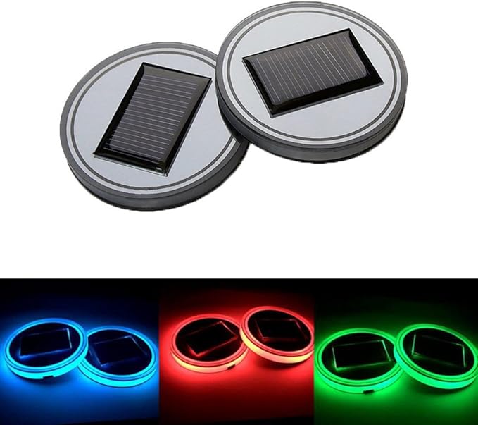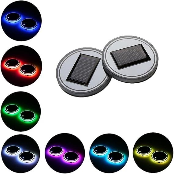 paket, Youngine Solar LED araba bardak tutucu, mat pedi, su geçirmez, içecek altlığı, dahili ışık ve titreşim sensörü, araç iç dekorasyon ışık lambası (renkli)