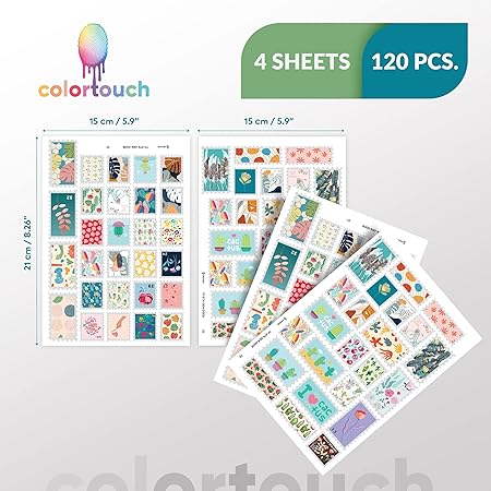 Paketleme Çıkartmaları – Hediyeler için Pul Görünümlü Sticker – 55 adet Farklı Boyutlarda – Renkli Etiketler – Pul Görünümlü Doğa Serisi Çıkartmalar