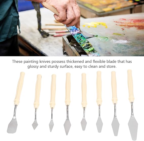 Palet Bıçağı Seti – 8 Parça – Paslanmaz Çelik Boyama Bıçakları – Spatula Palet Bıçağı – Metal Sanatçı Bıçakları – Renk Karıştırma Kazıyıcı – Yağlı Boya, Kanvas, Akrilik Boyama Aletleri