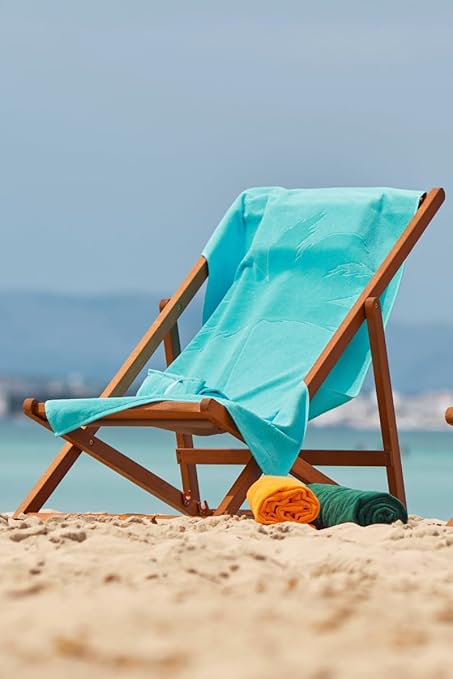 Palm Doğa Dostu Pamuk Plaj Havlusu Hafif, Su Emici, Hızlı Kuruma, Pratik Taşıma, Kum Tutmaz Kadife Yüzey, 70 x 140 cm (Mavi)