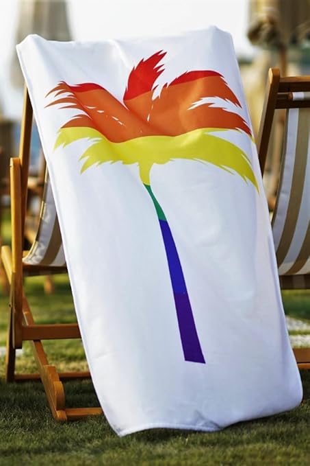 PALM Pamuk & Microfiber Plaj & Banyo Havlusu, Hızlı Kuruma, Hafif, OEKO-TEX100, Pamuktan Daha Yumuşak, Banyo, Sauna, Plaj, Havuz, Seyahat, Tatil İçin, Gökkuşağı Renkleri (Çok renkli, Palmiye)