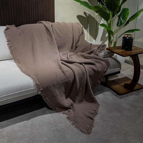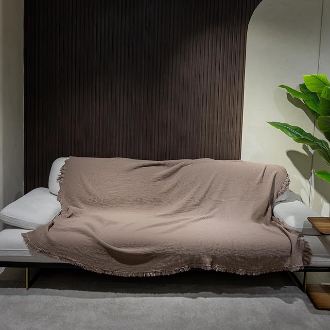 Pamuk 4 Katlı Çift Taraflı Müslin Koltuk Örtüsü (200 x 220 CM) (Sütlü Kahve)