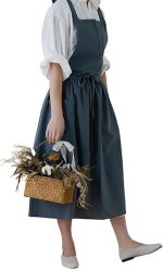 【H şeklinde tasarım】 Retro edebi sanat tek renkli önlük, çapraz sırt, kolay giyilebilir ve çıkarılabilir ve zahmetli kravattan kurtulur, ev pişirme, mutfak, yüksek kaliteli kafe, boş zaman barları vb. için uygundur.