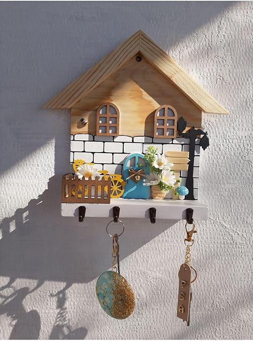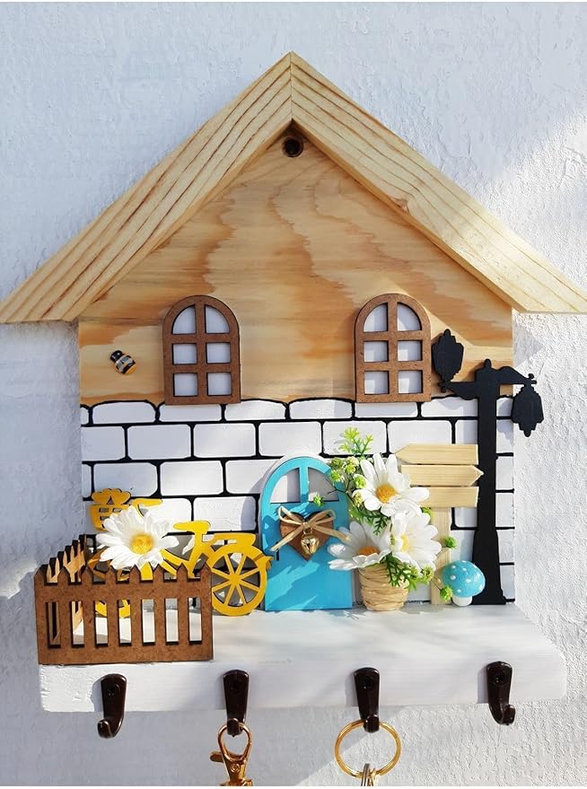 Papatya Temalı Raf – Raflı Anahtarlık Askısı – Hediye – Duvar Dekorasyon beyaz 50 x 110