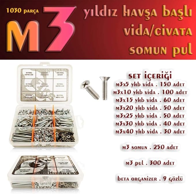 “Parça M3 Yıldız Havşa Başlı Vida Civata Somun Pul Seti” için yorum yapan ilk kişi siz olun Yanıtı iptal et