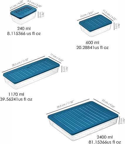 Parça Mikrodalga Uyumlu Organizer Saklama Kabı – 2x2400ml 4x1170ml 10x600ml 12x240ml Mavi