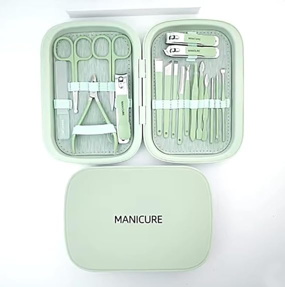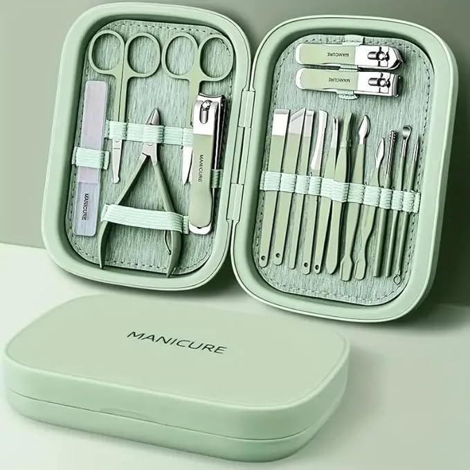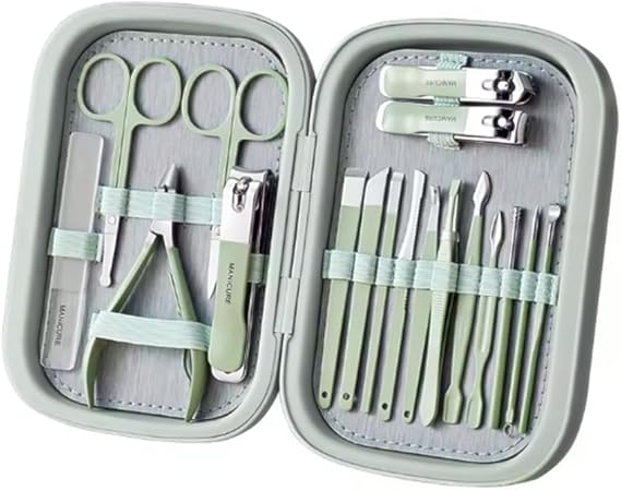 Parça Su Yeşili, Mıknatıslı Özel Kutuda Cam Törpülü Paslanmaz Çelik Manikür Pedikür Bakım Seti