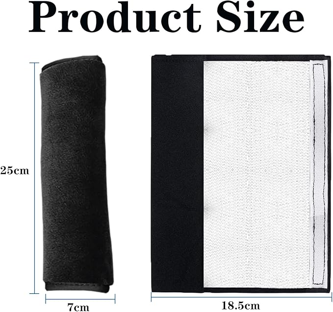 Ne alırsınız: 2 adet siyah emniyet kemeri omuz yastığı alacaksınız, boyutu yaklaşık 25 x 18,5 cm’dir, çoğu emniyet kemeri türü için uygundur.