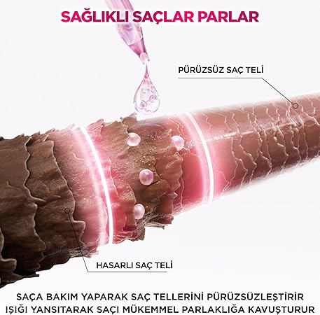 [Glikolik Asit] ile zenginleştirilmiş formülü saçı uzun süre kalıcı parlaklık ile mühürler.