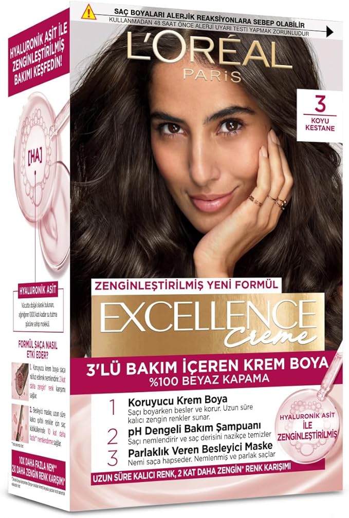 PARIS Excellence Creme Saç Boyası – 3 Koyu Kestane