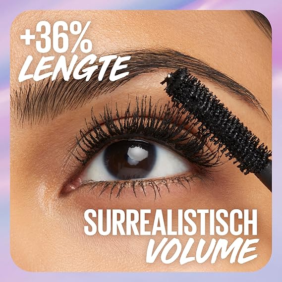 +36% daha uzun görünen kirpikler* / *Instrumental test, 29 kişi 10 kata kadar daha fazla hacim etkisi* / *Instrumental test, 29 kişi 24 saate kadar kalıcı* / *Kişisel değerlendirme, 146 kişi· Kirpiklerde sürreal uzunluk ve hacim etkisi Özel sarmal kıl fırça