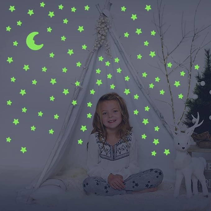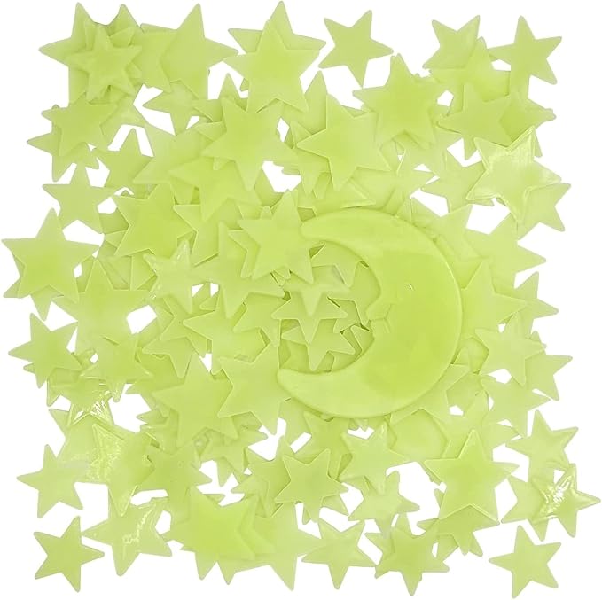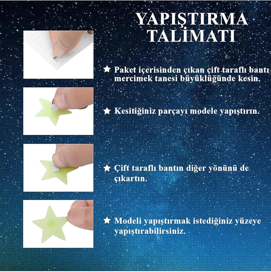Parlayan Fosforlu Ay ve Yıldız Tasarımlı Dekoratif (50 Adet Yıldız)