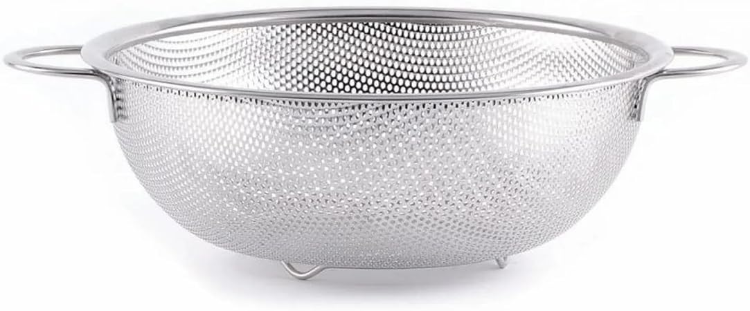 26cm Paslanmaz Çelik Makarna Süzgeçi, İnce delikli yapısı, suyun kolayca süzülmesini sağlarken küçük parçaların geçmesini engeller. Sepet süzgeç, mutfakta çeşitli işlerde kullanılabilir. Makarna süzme, sebzeleri yıkama, salata süzme gibi işlemlerde pratik bir yardımcıdır.