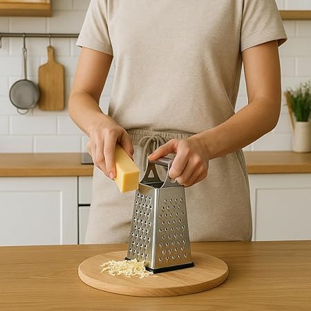 Paslanmaz Çelik 4 Taraflı Rende – 24 cm | Çok Amaçlı Mutfak Rendeleme Aracı | Peynir, Sebze, Meyve ve Patates için | Kaymaz Tabanlı & Ergonomik Saplı