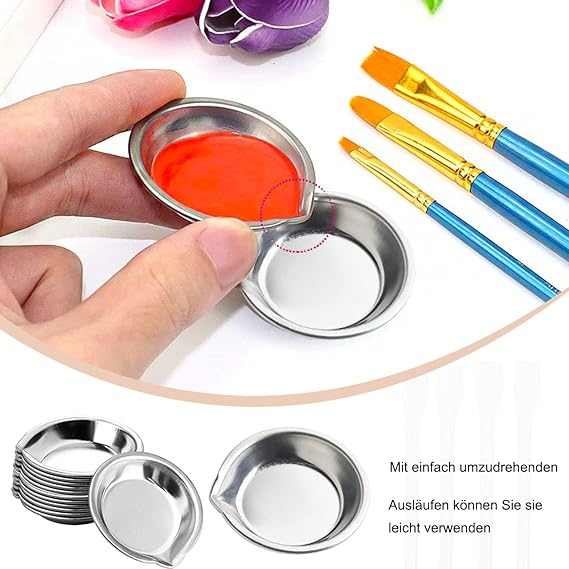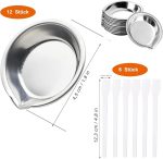 Paslanmaz çelik boya kasesi, 12 adet 6 adet plastik boyama bıçağı ile küçük yuvarlak boya kasesi, gümüş