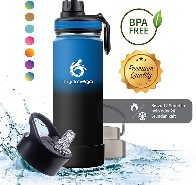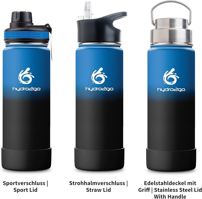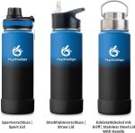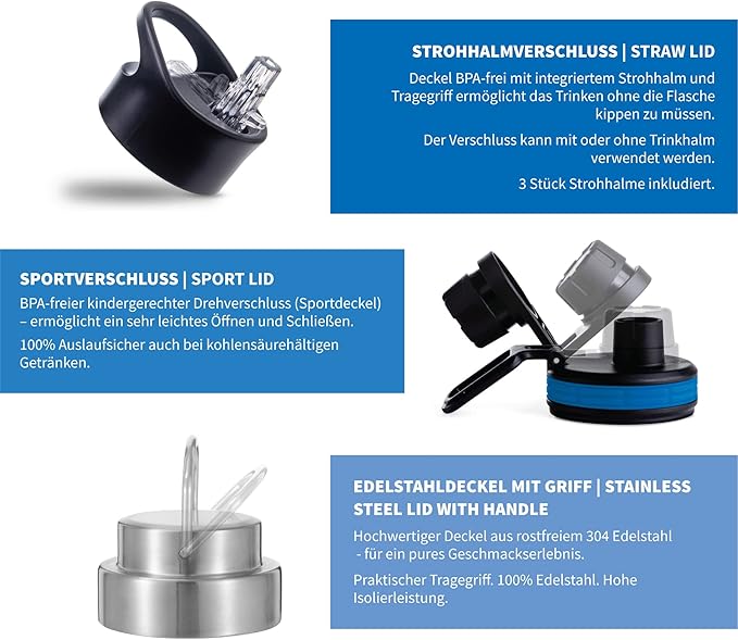 ® Paslanmaz çelik içecek şişesi, 0,5/1 litre, çocuklar, okul, spor, fitness ve dış mekan için, paslanmaz çelik şişe, BPA içermez + 3 içme kilidi, %100 sızdırmaz