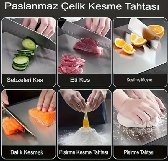 Paslanmaz Çelik Kesme Tahtası Levhası Panosu Kaydırmaz Slikon Ayaklı 24X34cm 2mm Gıda Temasına Uygun Antibakteriyel 304 Çelik